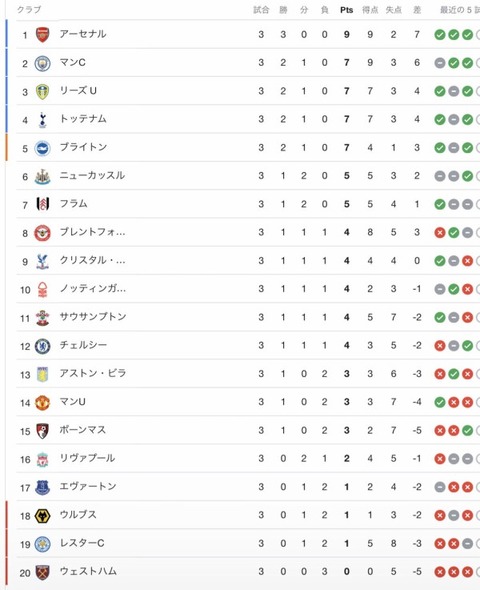 まだ3試合しかやってないみたいやけど騒ぐような順位なん?