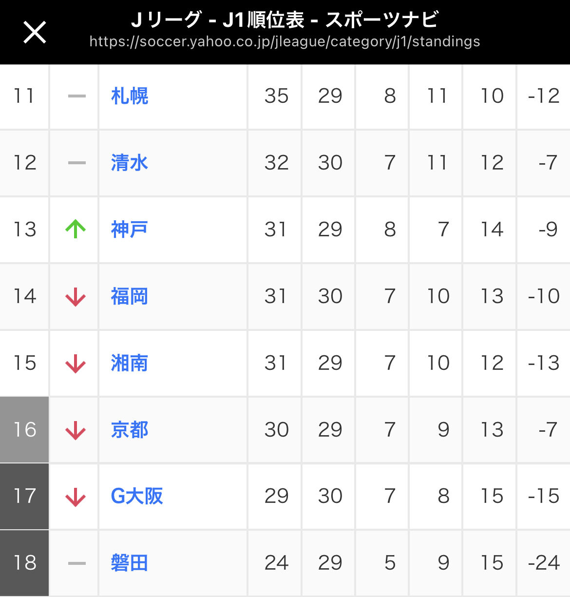 降格危機の神戸いきなり13位www